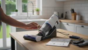 - Évaluer la batterie : Si l’aspirateur s’allume pendant quelques secondes puis s’éteint immédiatement, ou si le voyant de charge s’allume mais le pourcentage n’augmente jamais, vous êtes probablement face à un remplacement de batterie d’aspirateur sans fil.